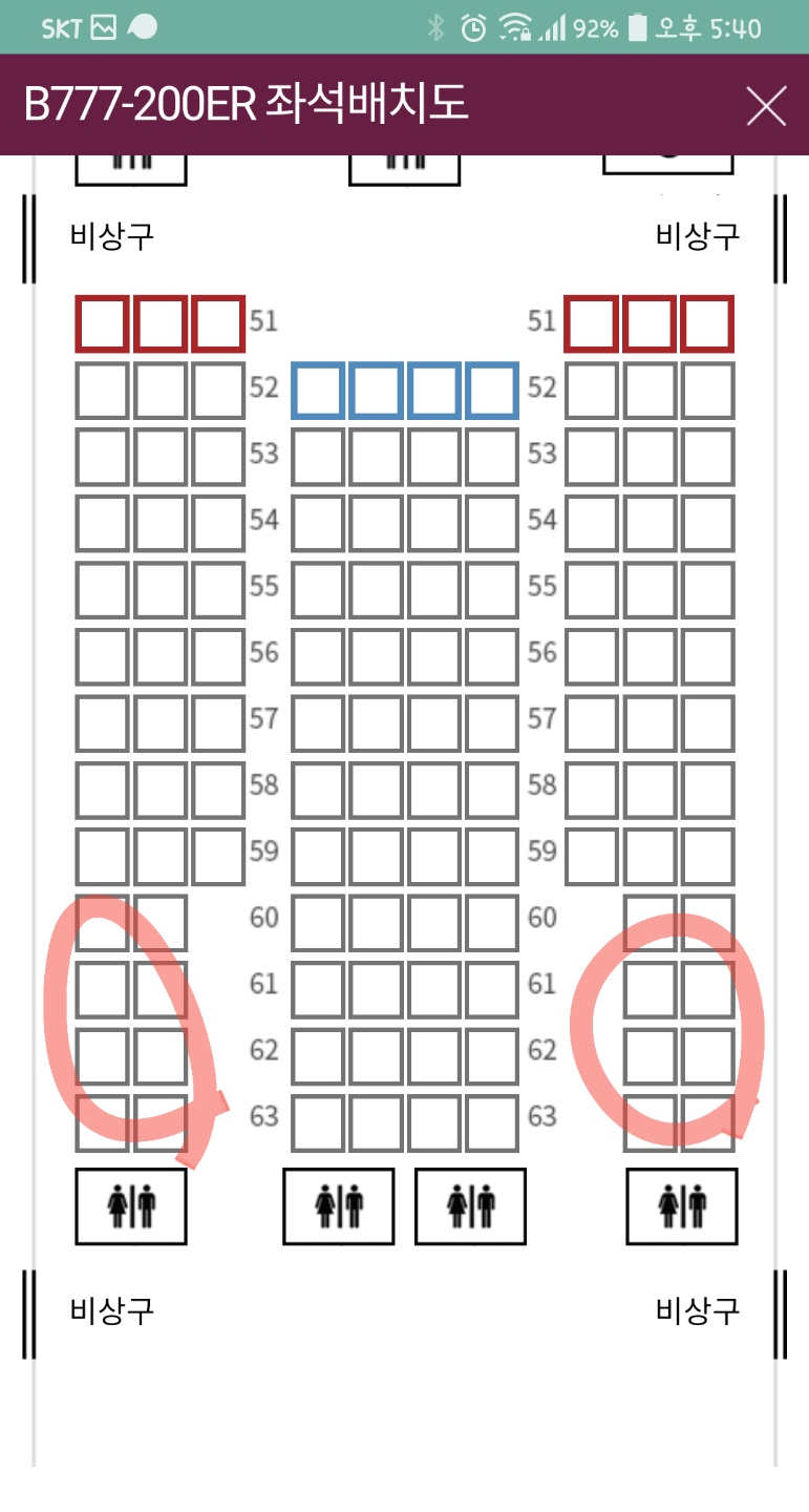 저는 왕복 모두 이 좌석들을 선택해서 다녀왔습니다.